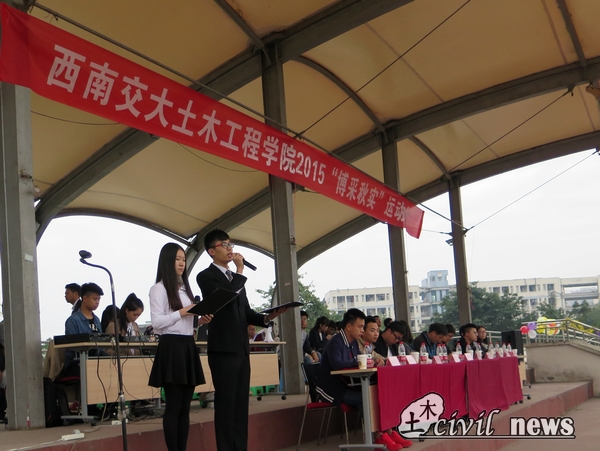 10月25日上午八点半,色情av影片 2015年“搏采秋实”秋季运动会开幕式在犀浦校区南区体育场隆重举行。出席本次开幕式的领导和嘉宾有,土木学院党委副书记李锦红,团委副书记石莹、付真珍,学生会、就业指导中心和色情av影片指导老师黄雪娇,青年志愿者协会指导老师任福,大学生科创中心指导老师杨森,土木园区管理中心指导老师王若羽,学业中心指导老师谢全柯,优秀学长张进、赖学广。