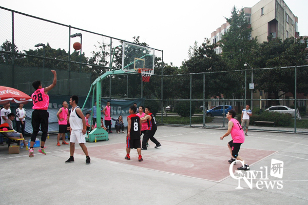 13日中午,第二轮小组赛开始。在比赛场地的最边缘,有一群穿着粉色球衣的队员们,很是惹人注目。他们是来自学硕桥梁2班的球员,正在和专硕市政1班进行比赛。比赛开始时,由专硕市政1班开始发球,进攻未果,学硕桥梁2班4号球员抢得篮板,快速传给28号球员,28号球员成功打进,率先得分。专硕市政1班也毫不示弱,11号命中3分做出回应。接下来几个回合中,学硕桥梁2班28号球员带领全队打出一波6:0的小高潮,逐渐将比分拉开。但就在此时,专硕市政1班11号跟21号连续发威,接连命中2记跳投,将比分慢慢缩小。此后,学硕桥梁2班一鼓作气,将上半场比分定格在38:17。