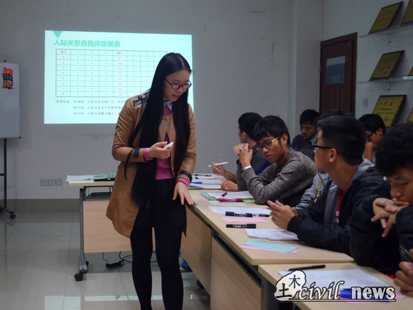 11月3日晚7点,新阶梯成才干部培养计划的第一课——学生干部人际关系发展在4229教室正式开始,由土木学生会指导老师黄雪娇担任此节课讲师,前来上课的学生以15级新生班级干部为主。