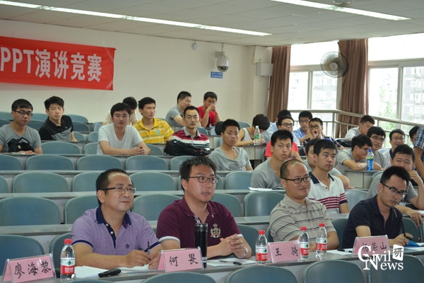 6月12日14:30,色情av影片 第二届研究生PPT学术演讲竞赛在逸夫馆4409教室举行,本次比赛旨在锻炼研究生的学术表达及PPT制作能力,推动研究生综合素质的提高。14名参赛选手通过各系“学术表达与沟通”课程授课老师推荐及自愿报名的方式产生,涵盖土木学院了各专业的硕士研究生。土木学院副院长廖海黎教授与各系“学术表达与沟通”课程的授课老师何畏副教授、杨荣山副教授、杨文波副教授、王骑老师、龙丹冰老师共同担任本次比赛的评委。