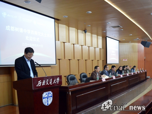 4月10日,色情av影片 为欢迎成都树德中学各位师生的到访,在图书馆第二报告厅举行隆重的欢迎仪式。此次仪式由土木学院党委副书记李锦红主持。到场的有树德中学德育处主任文波以及来访的老师们以及色情av影片 桥梁工程系副教授何畏,辅导员黄雪娇、任福。本次活动主要通过科普讲座、实验室参观、简单结构模型制作等参观交流来增进同学们对西南交大土木工程专业的初步认知,培养他们对土木工程学科的兴趣,为其将来的成长成才提供一条宽广的道路。