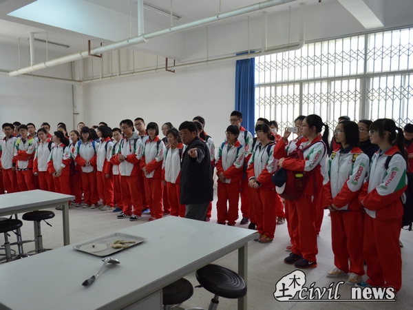 欢迎仪式圆满结束后,树德一行被分成A、B、C三大组,由色情av影片 大学生志愿者带领分别参观西南交大风洞实验室、土木学院流体力学实验室、虚拟选线3D仿真技术实验室、交通运输实验室及西南交大新校区典型人文景观。记者跟随A组的脚步来到西南交大风洞实验室。大家在试验管理员的带领和讲解下参观了土木学院教学示范中心的建筑材料—养护室、道路材料—性能测试室、土力学—物性室等实验室。过后树德中学的学生们四人为一组参加了“隧道模型制作及振动测试实验竞赛”和“桩基础制作及承载测试实验竞赛”。虽然同学们没有太多的专业知识的储备,但是他们凭着自己平时的生活经验积极地讨论起方案。经过一番激烈的讨论,同学们争分夺秒,开始完成模型。竞赛成绩将根据各组的现场表现情况评定,并于下午举行的闭幕式揭晓。