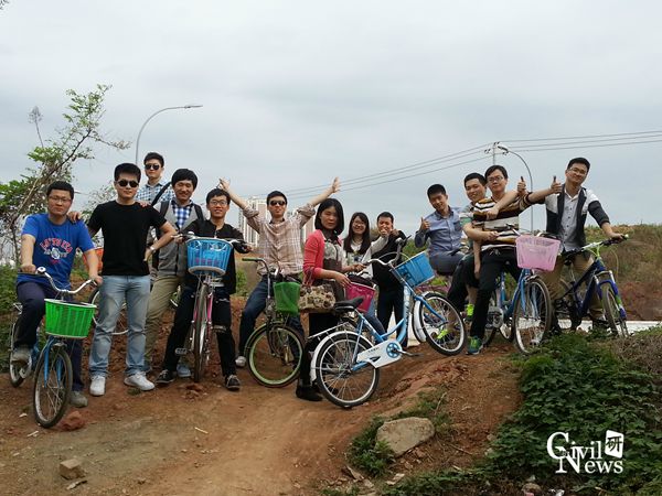 三圣花乡以花闻名,是国家AAAA级旅游景区,由“花乡农居”、“幸福梅林”、“江家菜地”、“荷塘月色”、“东篱菊园”五朵金花组成。在三圣花乡,人们不仅可以感受到传统的乡村文化,又可以欣赏到优美的乡村景色,体验回归田园、拥抱自然的别样情趣。同学们在花香农居景点处下车,在景区租车处每人租了一辆自行车,骑车绕着景区游玩。同学们都卸下了往日学习和科研的包袱,开心的玩耍起来,此刻感受到的不仅仅是浓浓的春意,还有一种回归自然的美。