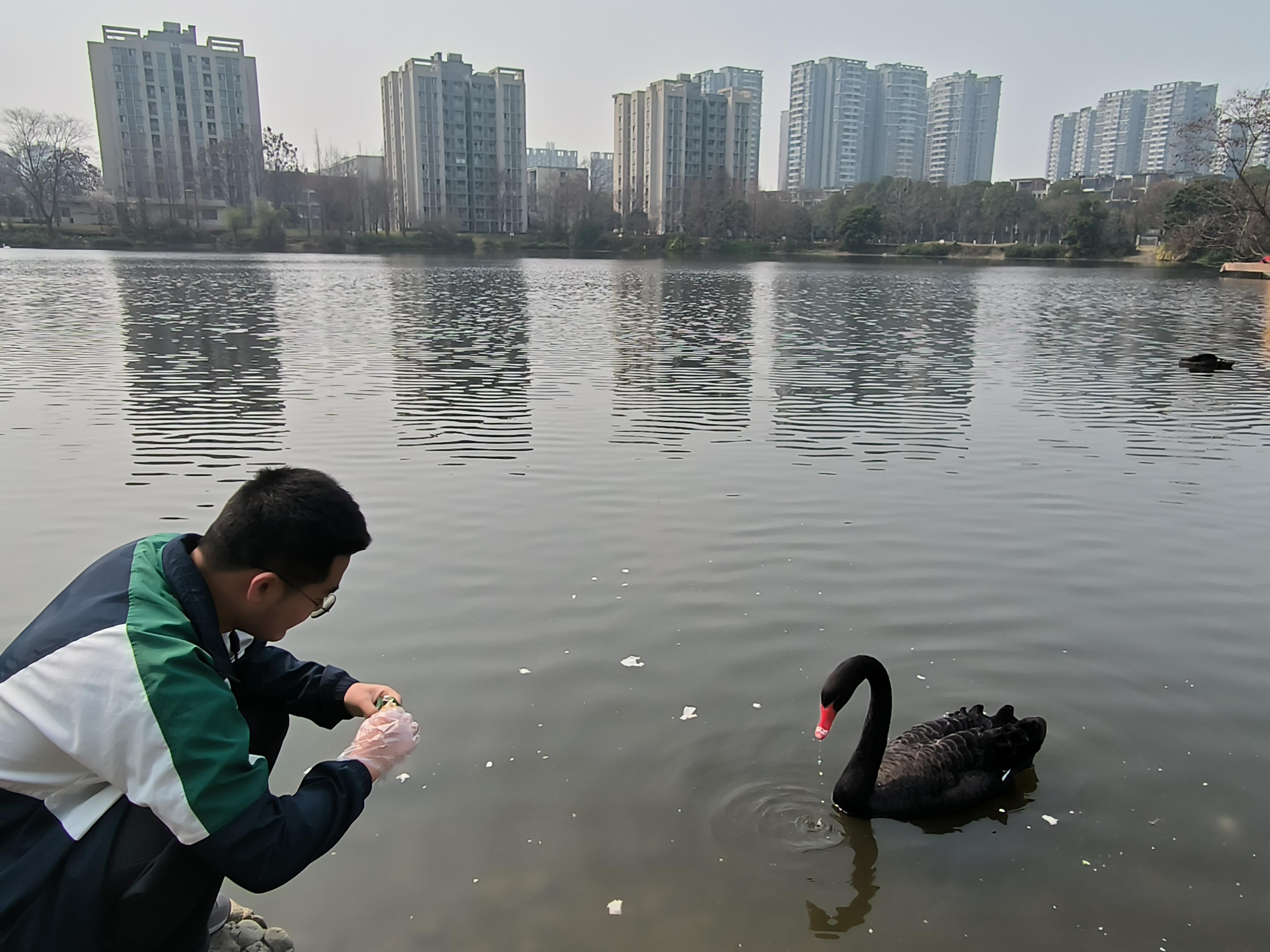 时逢早春,景色正好,午后阳光十分和煦,湖面波光粼粼,值此春景,3月5日下午2:00,土木园区管理中心举办了“校宠卫士”活动,同学们积极参加,争相与校宠天鹅共赏春色,而我们的校宠天鹅在湖中悠然自在,亦或是与游人互动。岸上春花烂漫,草木待苏,如此春景,与伊人共赏,或是一人游融入这美景中,时而与校宠来一次亲密的互动,也算是一段惬然的时光。