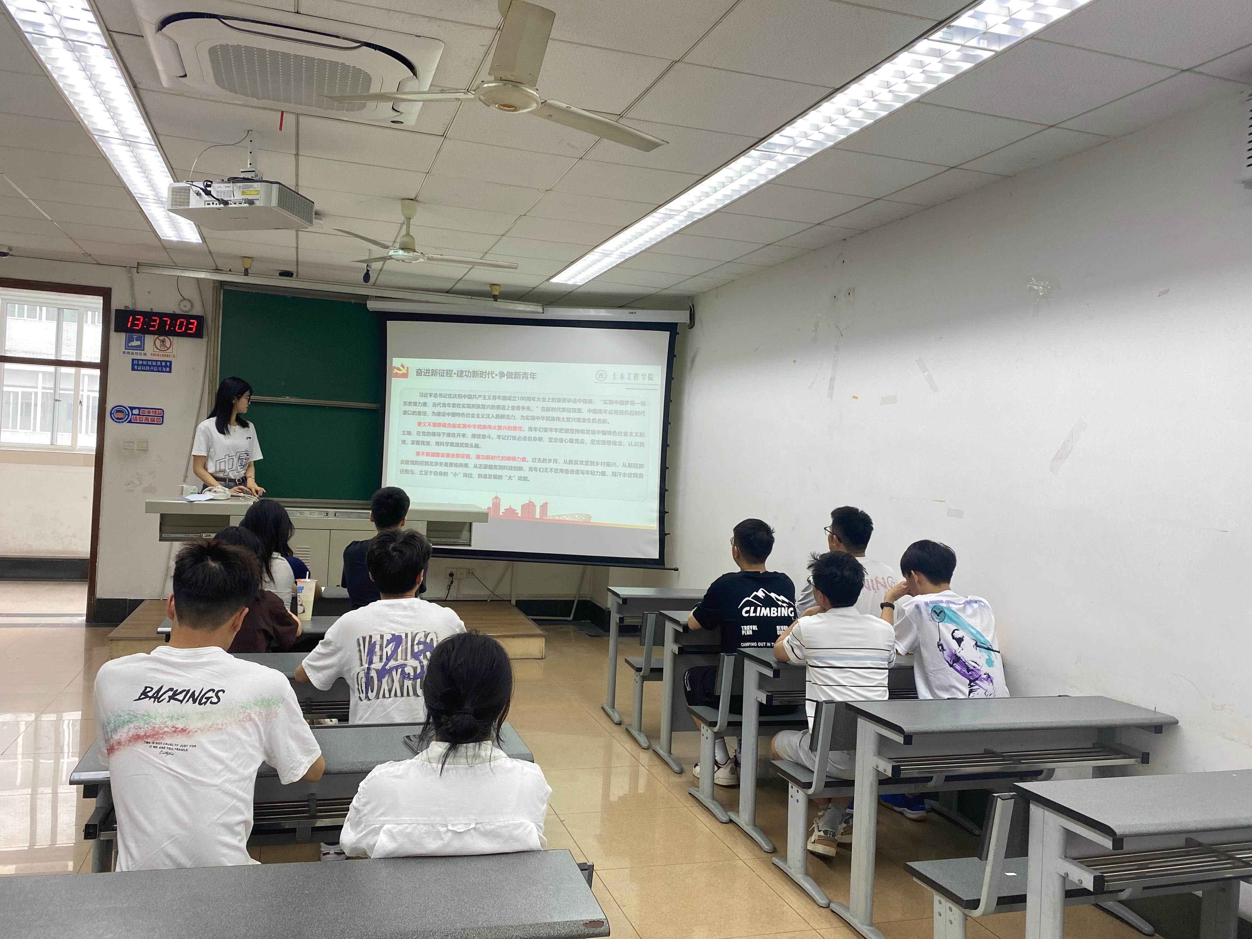 2022级硕士岩土1班党支部在九里校区逸夫楼4304B教室开展了以“奋进新征程 建功新时代·非凡十年”为题 “习近平总书记与大学生在一起”主题党日活动。参与活动人员为2022级硕士岩土1班党支部全体党员及积极分子,本次活动由党支部书记林荔榕同志主持。