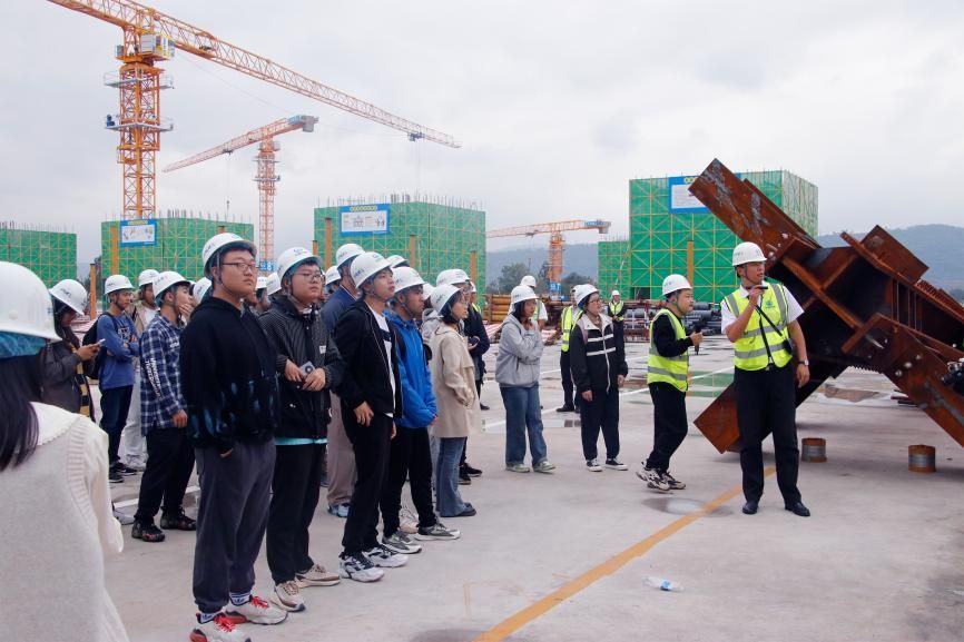 下午两点,学院师生一行前往成都市天府新区天府站项目工程建设现场。抵达现场后,同学们前往会议室进行了简单的参观,随后项目经理向同学们介绍了少城名邸工程项目的一些具体情况,并组织同学们完成了现场的参观活动。在参观过程中,同学们分为两组先后参观了施工现场,亲身感受了工作环境,并通过VR技术体验了建筑成果。针对同学们提出的疑惑,随行的工作人员一一进行了解答。