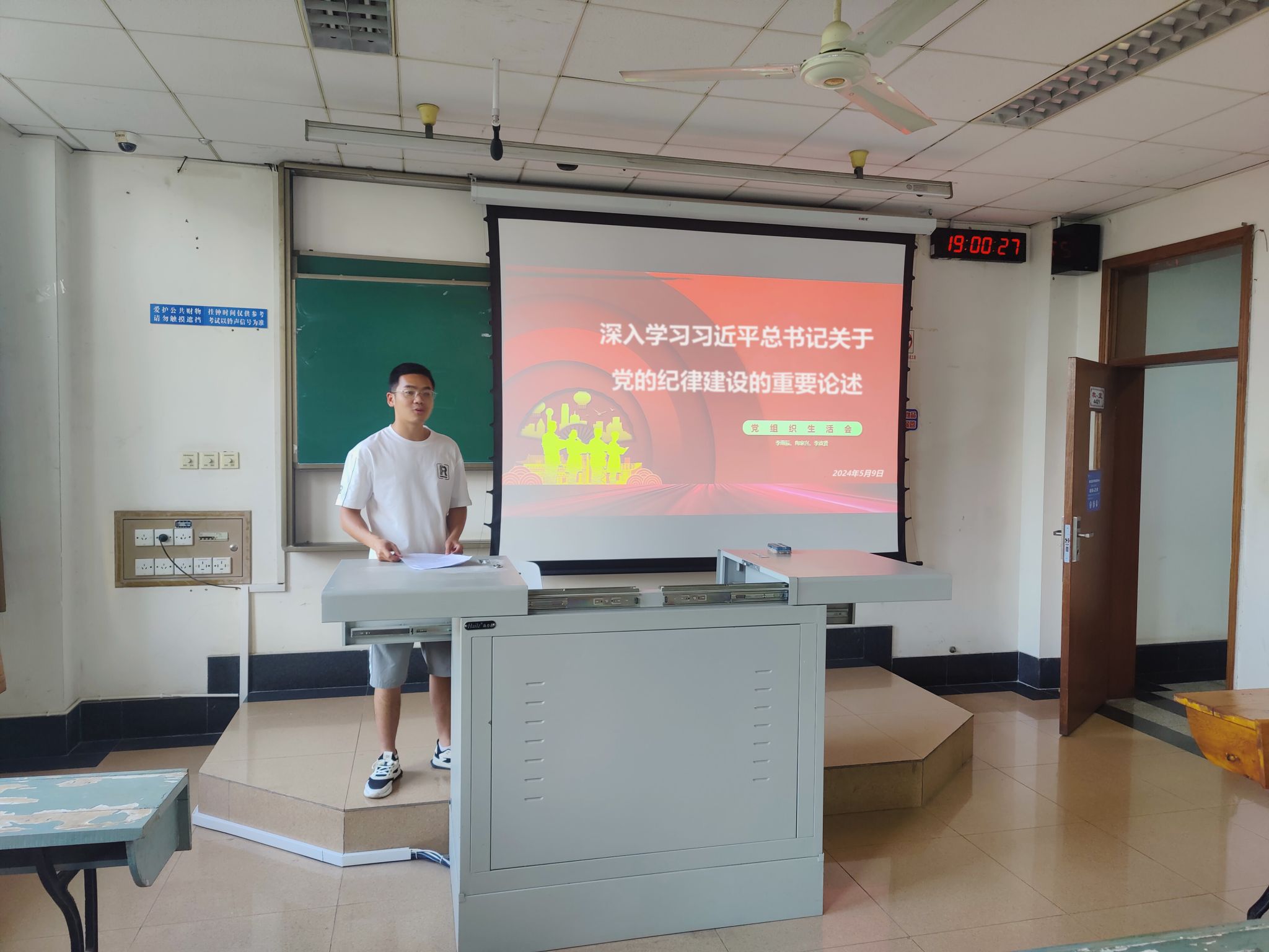 2024年5月9日晚七点,2022级硕士道铁2班党支部于九里校区4421教室开展了“深入学习习近平总书记关于党的纪律建设的重要论述”的主题党日活动,党支部全体党员(含预备党员)、发展对象、积极分子参加此次会议。会议由本党支部书记周辰泠同志主持。
