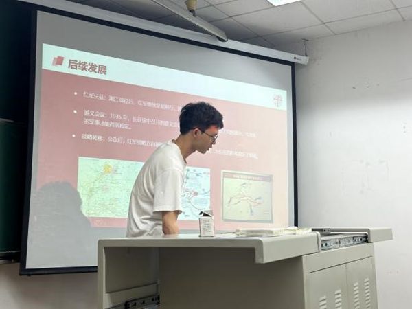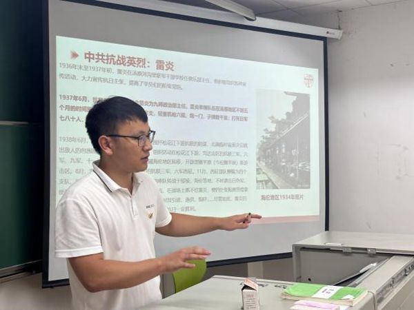 在参观完毕后,各同志回到九里校区J4408教室开展总结,随后支部党员代表曾耀懿、王龙同志作“赓续红色血脉”革命精神主题交流会红色故事分享,以了解先烈们的革命事迹,传承先烈的爱国精神,推动了学生党支部爱国主义教育建设。