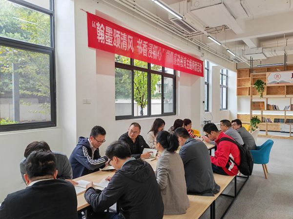 阅览室(九里校区工业中心G座(原印刷厂)一层)开展了“翰墨颂清风,书香浸初心”党风廉政教育主题的阅读活动,支部全体党员参加了此次活动。