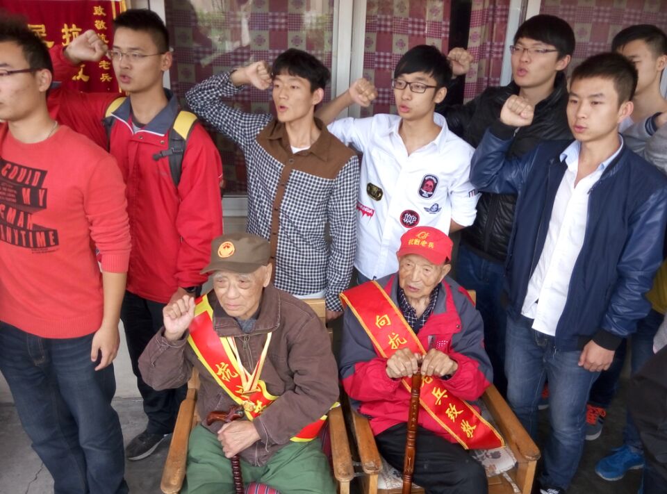 犀浦学生党总支举办的“铭记革命历史,坚定理想信念”拜访抗战老英雄活动在成都晚霞社会养老服务中心顺利举行。土木第一分党校12班共31名新党员发展分对象,在党建指导老师熊麟的带领下,看望抗战老英雄。