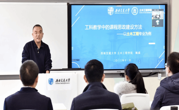 的杨成副教授长期深入研究课程思政有机融入土木工程专业教学的理论基础与实践方法。他在名为“工科教学中的课程思政建设方法——以土木工程专业为例”的报告中旁征博引,从西方国家高等教育中普遍存在的价值观教育出发,深入阐述了价值观教育的理论基础,分析了价值观教育与不同培养层次、不同类型教学内容的关系,并给出了切实可行的课程思政建设思路与实施路径。