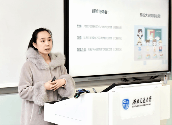 袁冉副教授曾荣获第五届四川省高校青年教师教学竞赛二等奖。她在活动中当场示范了《土力学》课程教学中一个章节的讲解。她的示范讲解充分展示了如何生动阐释枯燥的科学原理并润物无声地植入思政元素的教学技巧。她还热情鼓励其他青年教师踊跃参加教学竞赛、力求斩获佳绩。