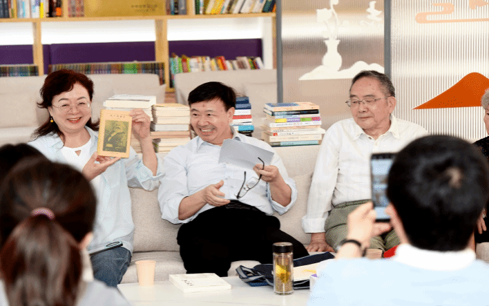 活动最后,举行了捐赠书籍仪式,由学院退休党支部书记艾莉同志代表退休教职工向学院职工书屋捐赠图书。