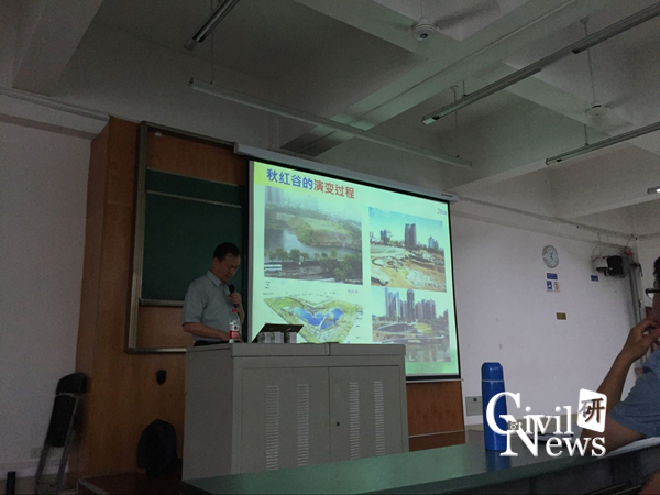 首先,周教授从全球气候变暖的角度引入我国工程可持续发展的重要性,然后介绍了绿色工程的发展概况。第二部分,周教授主要介绍了各国成功的绿色工程案例,包括美国、台湾、俄罗斯、日本等国的边坡整治、边坡绿化工程等,重点强调了工程、环境、生态与景观相融合的观念。第三部分从台湾的地理位置出发说明了落石、崩塌、泥石流等自然灾害发生的成因,然后介绍了台湾在边坡整治方面的绿色工程,其中包括暨南大学的边坡整治。第四部分重点介绍了台湾屡获世界发明金牌奖的JW透水铺面,阐述了JW透水铺面与生态融合的科学理念。最后,周教授阐述了人们对于自然的观念从人定胜天逐渐变为顺天应人,并提出应以孟子的“斧斤以时入山林,林木不可胜用也”作为工程人的反思,最后告诫我们应该做一个工程师而非工程匠。