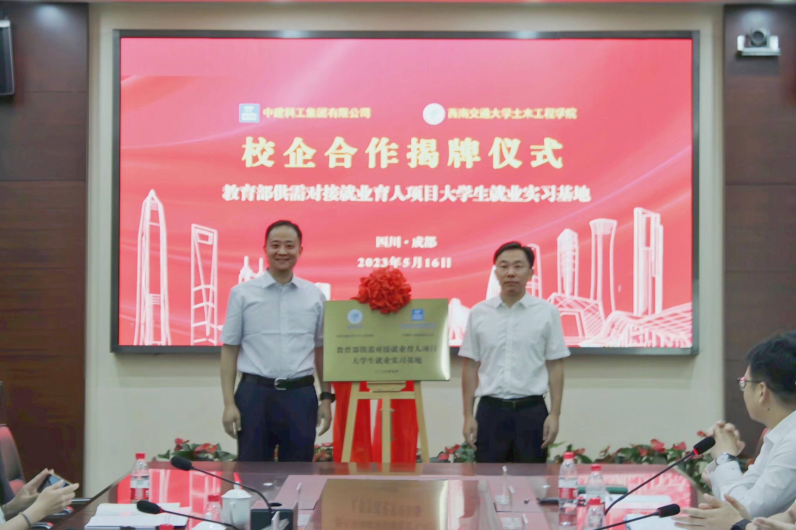 下午2点,学院师生一行首先抵达了天府文化共享中心进行参观,随后前往中建科工西部大区陈列室开展交流学习,并跟随游览车前往西部大区钢结构制造基地进行参观。参观完毕后,学院师生及中建科工领导前往西部大区会议室开展教育部供需对接就业育人项目揭牌仪式以及座谈交流。