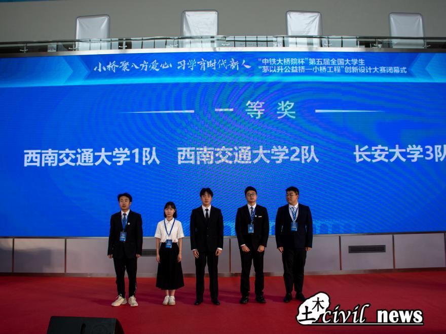 中午12点整,蒲黔辉院长再次感谢所有领导嘉宾、参赛师生、媒体朋友们以及中铁大桥勘测设计院集团有限公司对本次比赛的支持和付出,并宣布“中铁大桥院杯”第五届全国大学生“茅以升公益桥——小桥工程”创新设计大赛圆满闭幕。
