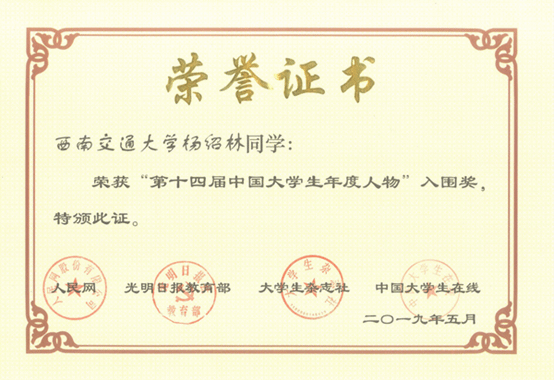 学生获“中国大学生年度人物”入围奖