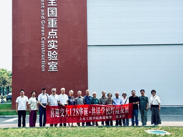 2024年5月22日早9:00土木离退休第二党支部以原校长沈大元教授、原副校长刘学信教授为表率的12名支部成员及家人准时在九里校区晚晴苑乘校车出发到犀浦校区与支部其他4位成员汇合在犀浦校区参观共览学校发展,共庆交大128华诞。