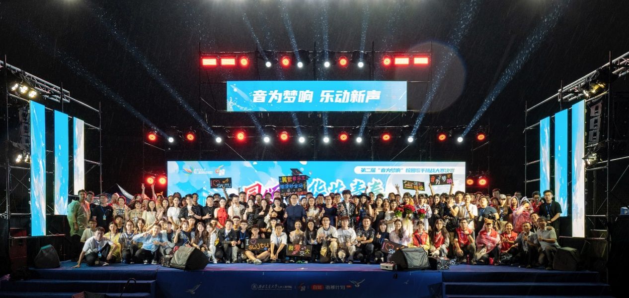 犀浦校区北区体育场内星光璀璨、歌声飞扬,第二届“音为梦响”校园歌手挑战大赛决赛暨夏日毕业音乐会在此隆重举行。学校党委副书记高平平与千余名师生校友齐聚一堂,共同见证这场青春的音乐盛宴。