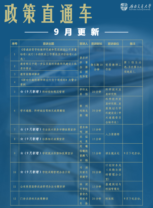 在犀浦校区4417A会议室召开党委和党政联席会议,学院领导班子成员、全体党委委员、科职干部以及部分教师代表参加了本次会议。会议邀请了学校机关与直属单位党委常务副书记沈哲、机关与直属单位党委综合管理办公室副主任奉天、党委教师工作部思政科科长崔健、重大工程办公室(川藏铁路研究院)项目主管邓慧心到会进行了“政策直通车”宣讲。本次宣讲的主要内容是师德师风建设专题和CZ铁路信息安全工作政策专题。