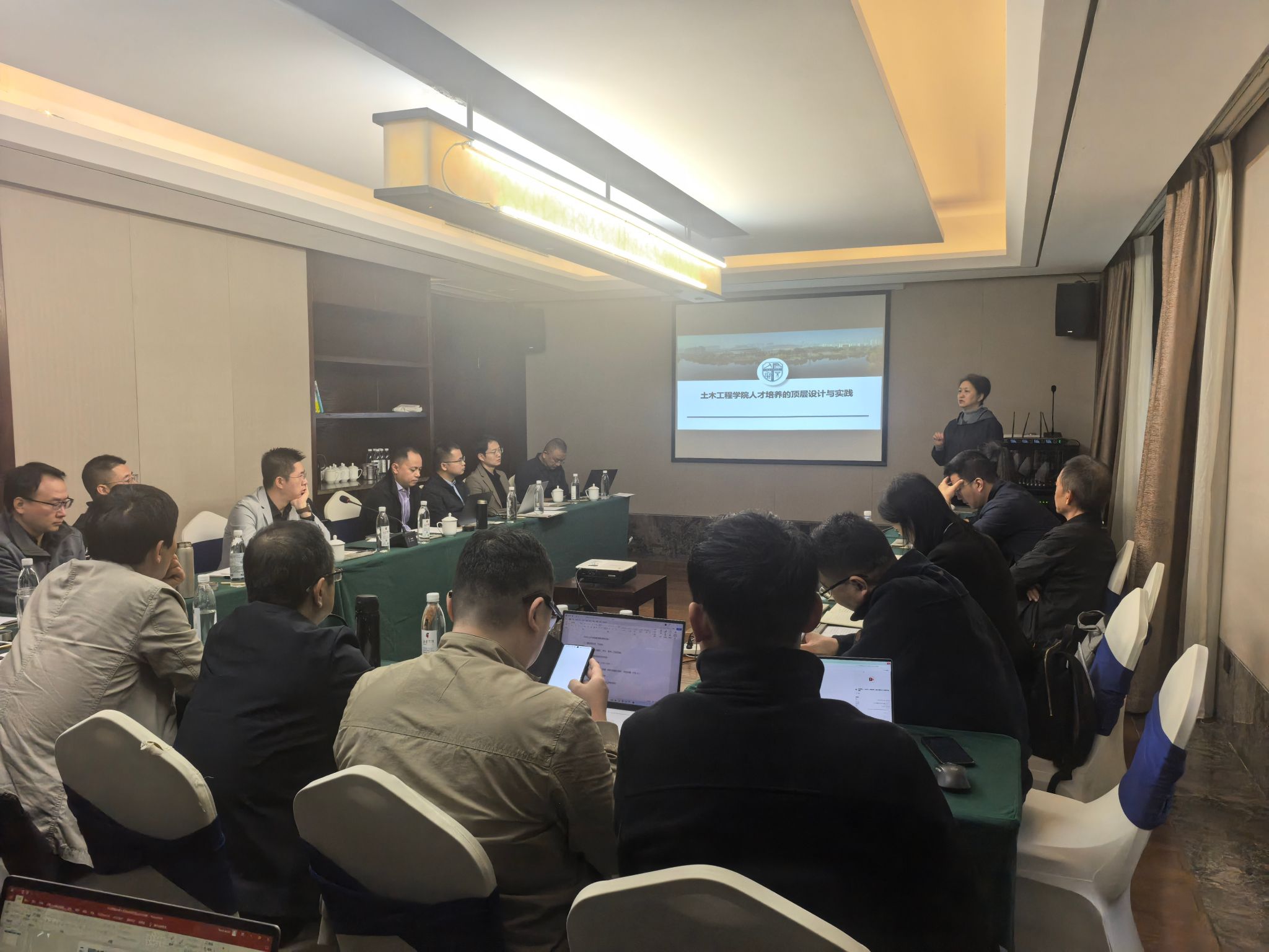 土木学科转型升级的挑战与探索”报告,重点围绕当前土木学科面临的挑战以及学院转型探索与实践两个话题,深入剖析了土木学科发展面临的生源挑战、行业发展挑战和政策影响因素等,详细介绍了学院在回归人才培养、学科转型升级、综合改革配套三个方向的实践探索与成果成效。车小洁副书记介绍学院办公用房优化管理的思考及方案,阐述了开展学院办公用房优化配置的重要性、紧迫性以及具体方案,旨在推动解决学院办公用房紧张困境,不断提升办公用房服务配套质量与管理水平,增强师生幸福感、获得感。富海鹰副院长介绍土木人才培养的顶层设计与实践,并部署教学成果奖申报规划与下阶段工作计划,强调要围绕学院的顶层设计,在红土课程思政的数字化建设与育人、人才培养智能化转型与高质量发展、新时代土木双碳创新人才培养模式、高素质复合型人才多元国际化培养与全过程控制的土木人才培养质保体系等 6大主题持续发力,以实现教育教学的高质量发展。