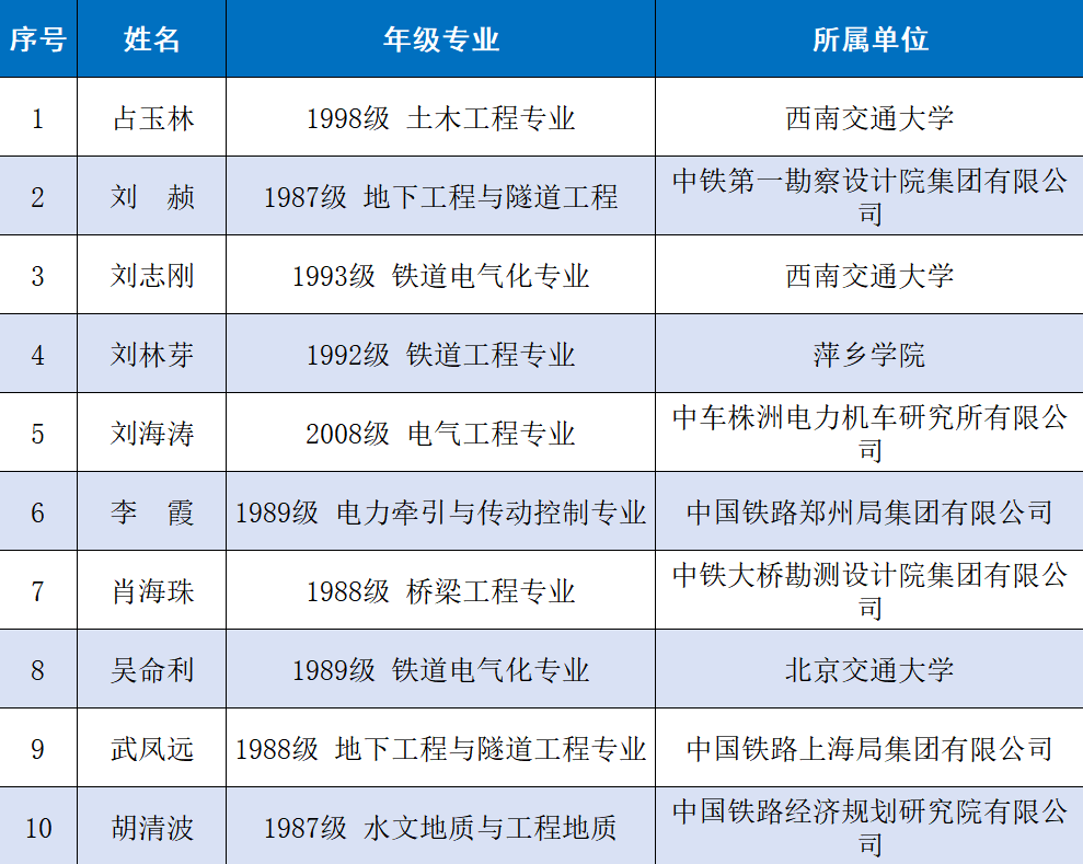 近日,詹天佑科学技术发展基金会发布了《关于公布第十七届詹天佑铁道科学技术奖评审结果的通知》(詹基函〔2024〕17号),经专家评审组初评、詹天佑奖奖励评审委员会复审和詹天佑科学技术发展基金会第四届理事会终审,评选出获奖者134名,创新团队10个。17位交大人荣列其中,名单如下(按姓氏笔画排序):