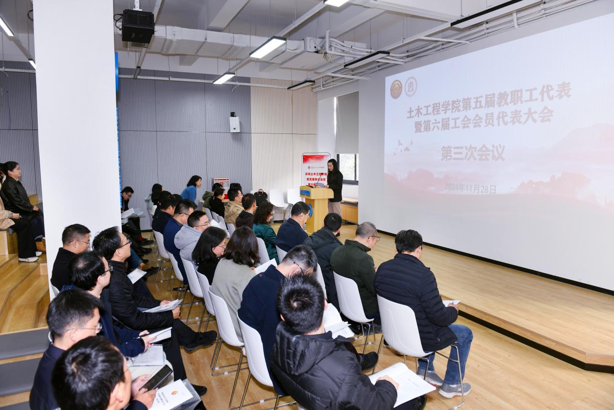 第五届教代会暨第六届工代会第三次会议于2024年11月28日下午在九里校区工业中心G座多功能厅顺利召开。学院党委书记郑江、院长蒲黔辉,院领导班子及近40名正式代表参加会议。学院党委副书记兼副院长车小洁主持会议。
