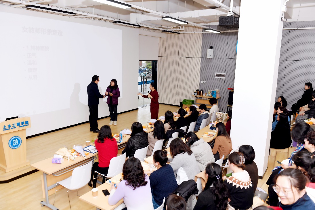 工会于3月6日下午在九里校区工业中心G座一层多功能厅围绕“奋进新征程·巾帼绽芳华”的主题举办了“她成长”——职业礼仪与个人形象管理专题讲座。活动由学院工会主席王艺霖老师主持,学院女教职工、工会干部及机关党支部党员共40余人参与。
