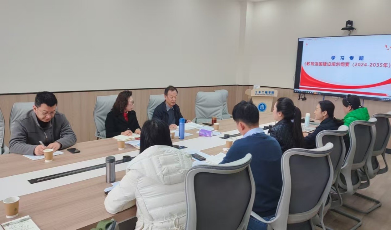 随后通过读《纲要》原文、观看实践案例,听专家解读《纲要》的形式,中心组深入学习了加强和改进新时代学校思想政治教育;分类推进高校改革发展;加快建设中国特色、世界一流的大学和优势学科;实施基础学科和交叉学科突破计划等共9个专题。集体学习完成后,徐腾飞副院长和车小洁副书记分别进行《全面把握纲要核心要求,明确教育强国建设方向》、《以教育家精神铸魂强师思考》的重点发言。蒲黔辉院长结合学院实际谈了交叉学科、有组织科研方面的学习体会,并指出要深入学习《纲要》,研究部署具体举措。最后郑江书记总结指出,要深刻领会《纲要》的重大战略意义、科学内涵和实践要求,认识到发展面临的新机遇和新挑战,深入推动教育科技人才一体化发展,结合分管工作抓落实,高质量推进新一轮“双一流”建设,为加快建设交通特色鲜明的高水平研究型一流大学贡献力量。