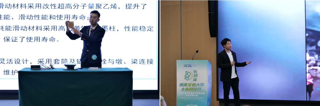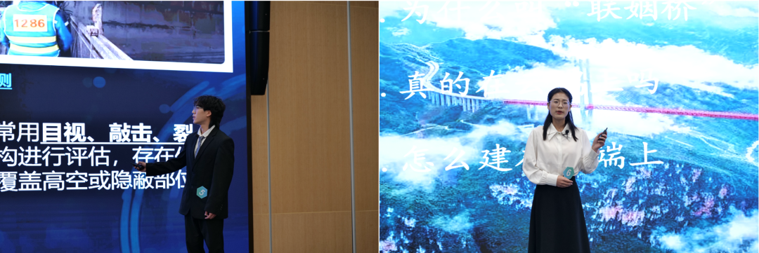 决赛现场,20位选手大显身手,各展风采。有的以悉尼海港大桥为例,揭秘跨越数年的力学奇迹;有的拿出精心制作的模型道具,阐释智能建造中3D打印技术如何赋能未来人居……在主题多样、特色鲜明的展示中,选手们思路清晰,用生动风趣的语言深入浅出地讲解知识点的原理、应用及优势,展现出智能建造与智能运维的科技魅力。
