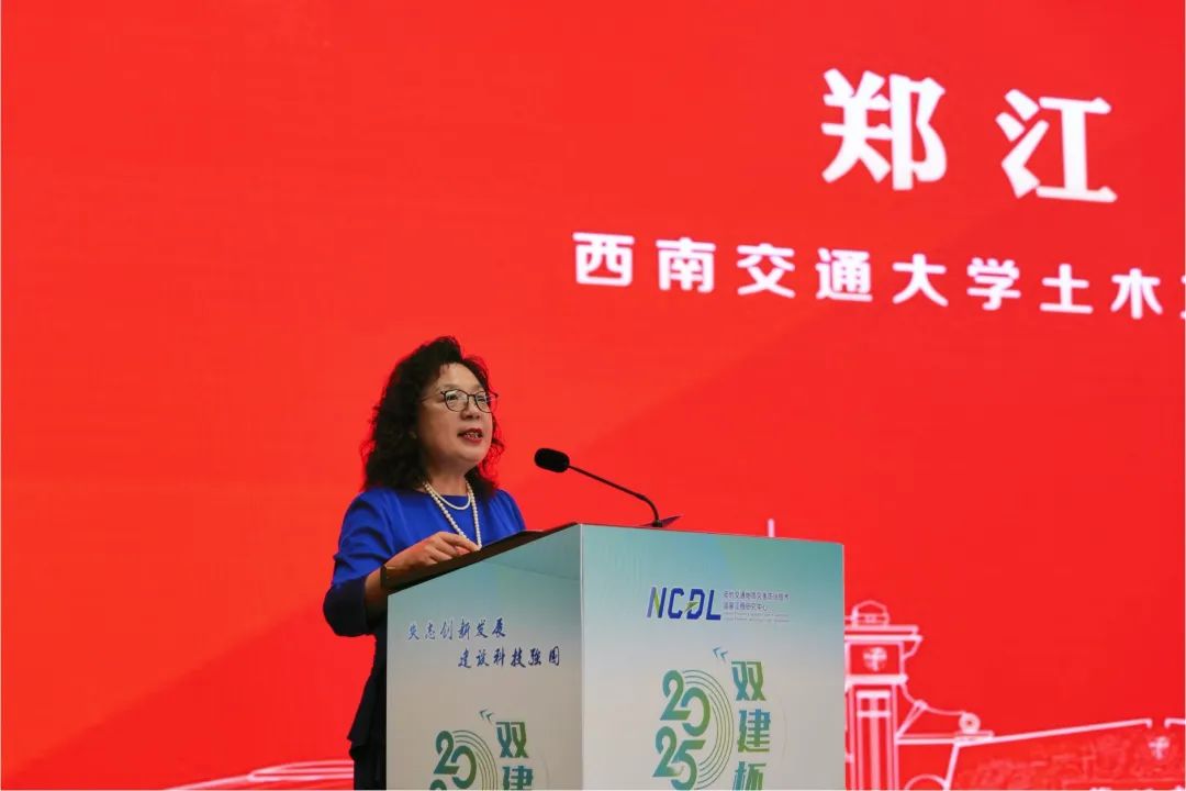 随后,郑江书记代表学院致辞。她强调,本次大赛主题紧密结合学院特色,通过科普讲解,讲述科学,诠释万物,有力激发大学生创新思维,提升科学素养与实践能力,以此大力弘扬科学家精神。希望本届大赛呈现一堂鲜活生动的“思政课”,把实现中国式现代化的建设场景搬到讲台、屏幕、田园和厂房,让同学们充分领略和感受我国科技发展的蓬勃力量;希望本届大赛的有序组织,成为锻造未来土木工程师的“练兵场”;希望以本届大赛成为一台“播种机”,在同学们心中播下做科学传播使者的种子,做爱科学、讲科学、学科学、用科学的践行者;希望本届大赛成为西南交大和四川双建联袂打造一座校企精准对接的“连心桥”,成为科普事业蓬勃发展的有力支撑,成为建设教育强国、实施科技强国战略的生动实践。她还表达了对所有提供帮助和支持单位及个人的感谢,并祝愿此次大赛圆满成功。