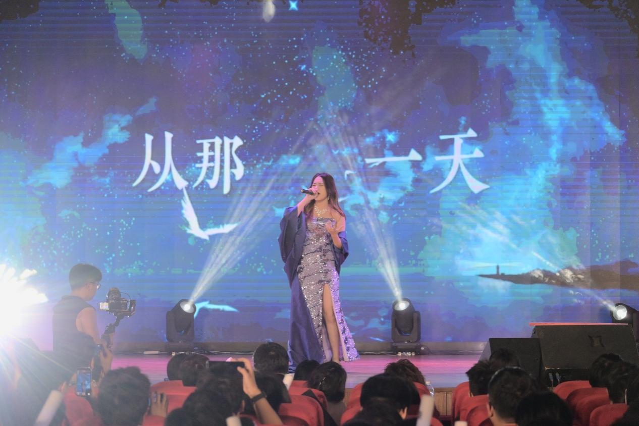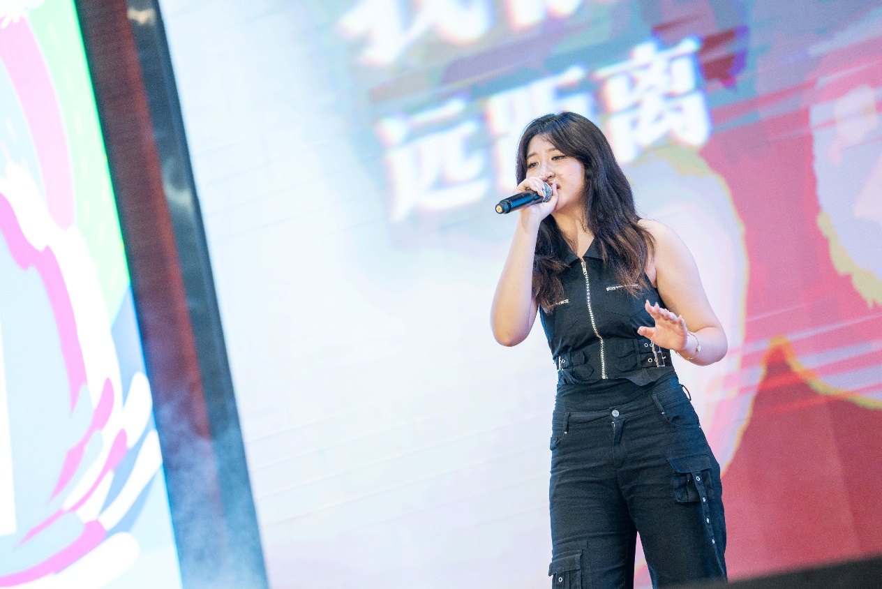 “爱能克服远距离,多远都要在一起”,第二届“音为梦响”校园歌手挑战大赛冠军安宇欣为现场的毕业生们送上祝福。愿大家不论距离多远,都要怀揣着学校“竢实扬华 自强不息”的精神,一路坦途,勇往直前。