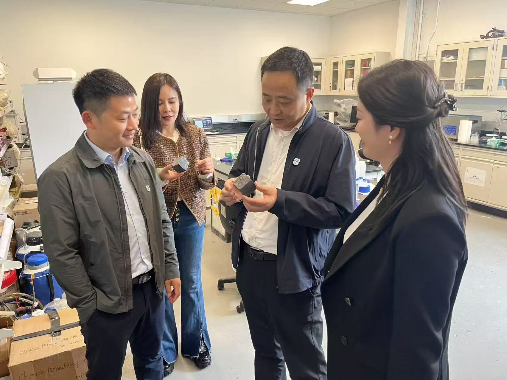 土木学院校友保义教授,参观了他和蒙维娜教授所在的智慧基础设施实验室,就土木工程绿色建造与智能维养等学科最新研究进展及发展趋势进行了深入交流。