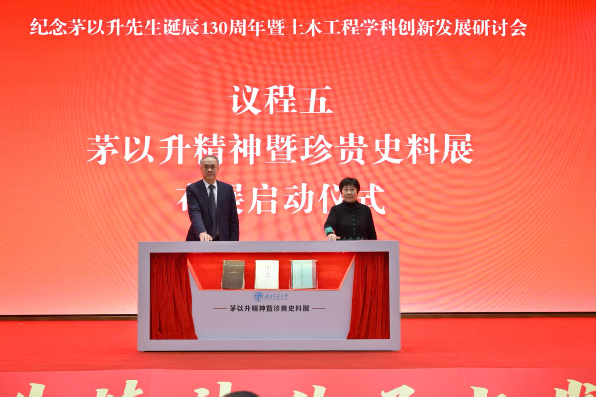 现场举行“茅以升精神暨珍贵史料展”启动仪式。余敏明、茅玉麟共同为布展揭幕。现场展柜展示茅以升先生“博士论文答辩本原件”“康奈尔大学硕士论文原件”和“《钱塘江建桥计划书》原件”三本珍贵史料,其中博士论文答辩本为国内孤本,也是首次在国内公开展示。这些文献见证并辉映着茅以升先生求学报国、笃行建功的光辉一生,具有独一无二的学术价值与精神力量。后续,以茅以升珍贵史料为核心的“茅以升精神暨珍贵史料展”将在色情av影片