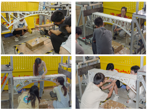 5月14日上午8时,各组参赛模型经过集中荷载、均布荷载和移动荷载几级加载的激烈角逐,16组模型在完赛的48组模型中脱颖而出,成功加满所有预设荷载,成为奖项的有力角逐者。