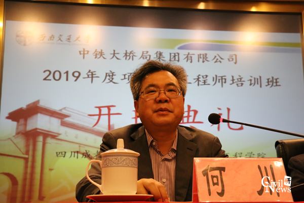 表示了感谢。何校长称赞中铁大桥局是我国桥梁建设的“国家队”,此次培训开创了川藏铁路技术人才培训的先河,充分体现了中铁大桥局的远见和眼光。何校长进一步指出,本次培训名为培训,实为交流,是现场经验和理论知识相结合的好机会,对于参加培训的学员和老师都是一次提升自我的机会。最后,何校长预祝此次培训顺利进行,中铁大桥局能在川藏线建设中取得成功。
