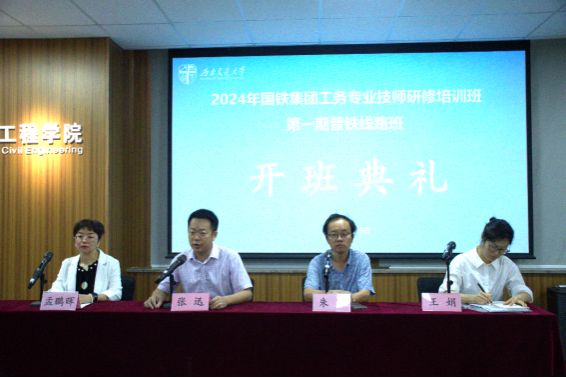 2024年6月19日上午8:30,国铁集团工务专业技师研修培训班(第一期)普铁线路班开班典礼在九里校区土木馆1234教室顺利举行。出席此次开班典礼的有色情av影片