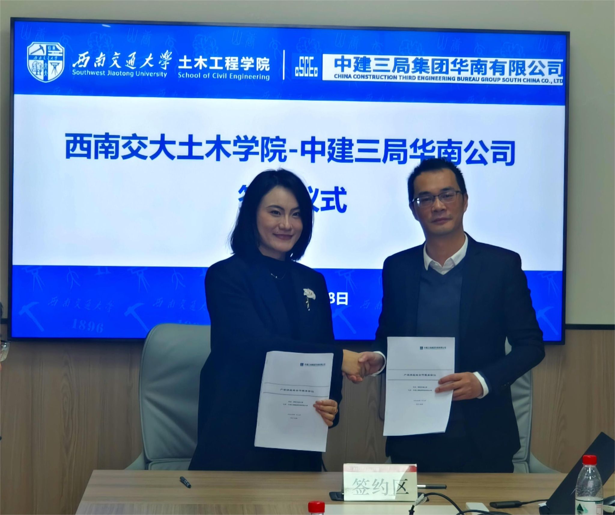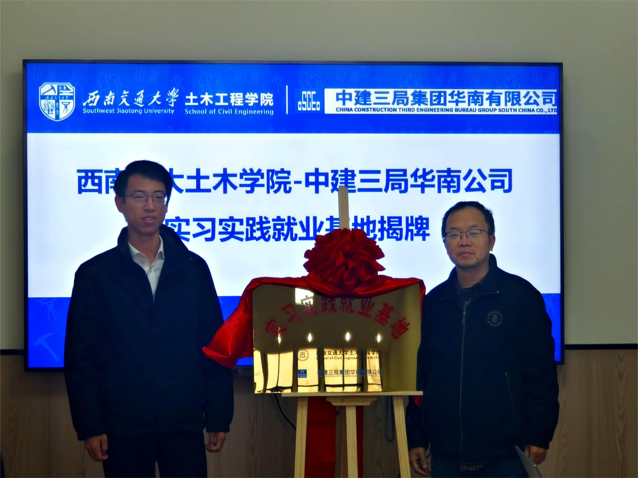在全体参会人员的见证下,周曦副书记与李红梅副书记签订了校企合作协议,朱明老师与靳永桥经理共同为实习实践就业基地揭牌。
