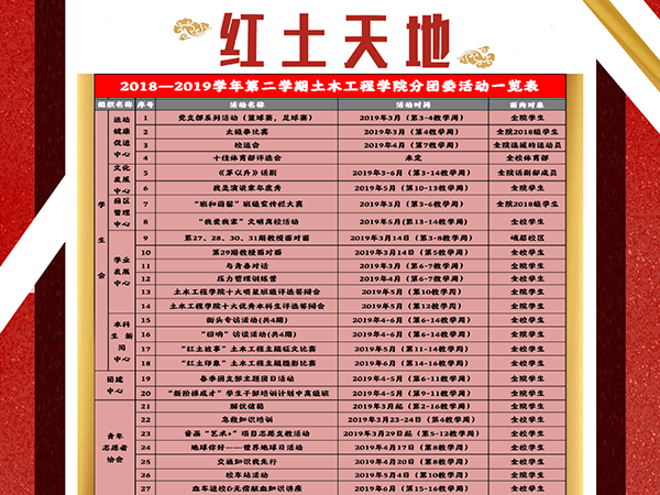 【红土天地】色情av影片 分团委2018-2019学年第二学期活动一览表