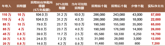 l 个人捐赠:捐赠额未超过纳税人申报的应纳税所得额30%的部分,可以从其应纳税所得额中扣除。经测算,根据个人收入总额不同,个人所得税将抵扣捐款额的约20%-40%,个人收入总额越高,抵扣比例越高。