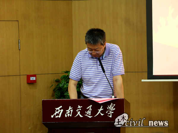 院长高波教授,党委书记钱永久教授,副院长蒲黔辉教授、苏谦教授、崔凯副教授,党委副书记李彤梅副教授,办公室主任周曦老师,土木工程制图教研室主任王广俊教授,地下工程系副主任王明年教授,结构力学教研室主任罗永坤副教授,岩土工程系罗书学教授,数学学院督导组组长秦应兵副教授,桥梁工程系占玉林副教授,结构力学教研室黄慧萱副教授,流体力学教研室郑爽英副教授,地下工程系蒋雅君副教授,桥梁工程系陈远久老师,土木工程制图教研室周慧莺老师,国家级教学名师易思蓉教授及学院各位辅导员们。整个典礼由土木学院党委副书记李锦红副教授主持。