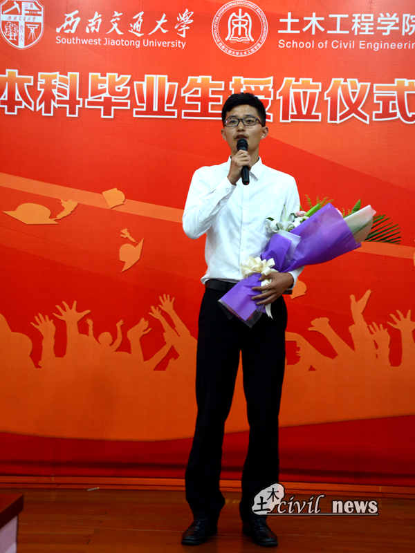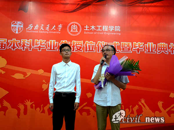 犀浦校区图书馆一号报告厅举行的毕业典礼之上也举行了学生代表向恩师鲜花仪式。