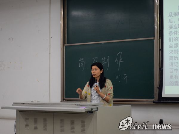 讲座开始时,刘萍老师便向同学们交代了近年来交大土木应届毕业生约70%本科就业率的高比例数据,并借此说明读研并非是土木学生唯一的最佳出路。“毕业后直接工作,将继续成为大部分土木本科学生的选择,所以如何写好一份求职简历就显得十分重要了。”刘萍老师分析道。