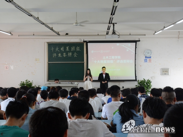 学业与发展指导中心承办的“十大明星班级”评选答辩活动于X2519正式开始。参加此次大会的评委嘉宾有土木学院党委副书记李锦红、团委书记刘萍、团委副书记付真珍以及各年级辅导员们。本次活动由来自主持团的魏云格和刘锦峰同学主持。