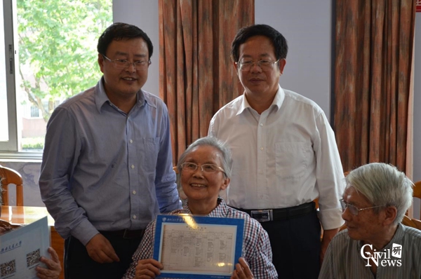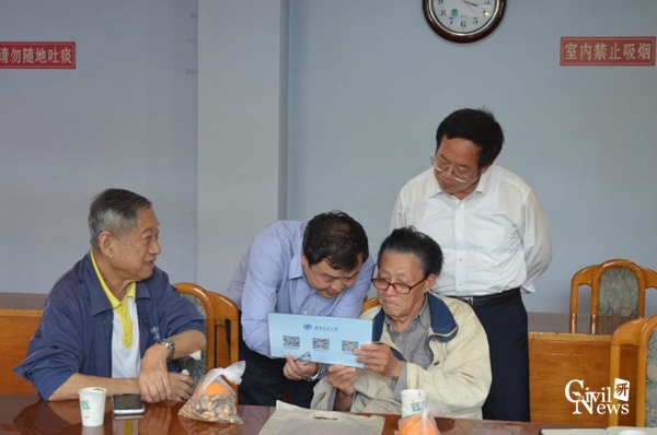 接下来,谭处长和刘书记将54级老校友们当年的在校成绩单依次颁发给大家,并一一合影留念。