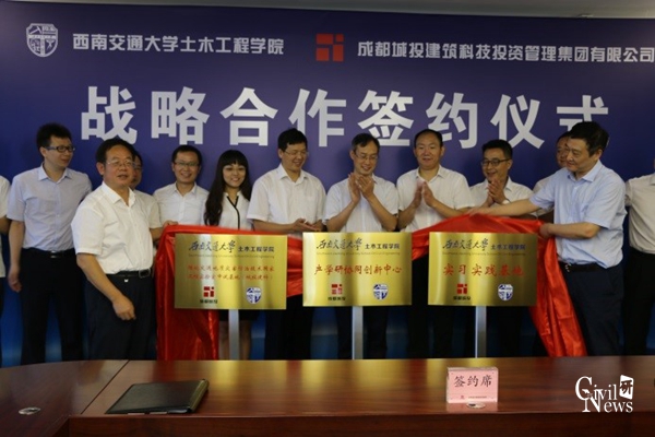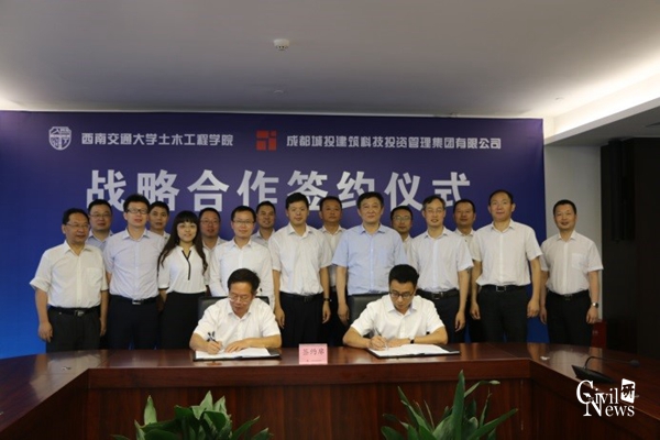 土木学院成为合作伙伴,此次合作符合学科交叉、校企合作的大趋势,在合作中要充分利用双方的优质资源,最终达到互利共赢的局面;罗刚副总经理结合自身从交大到城投工作的经历讲述了双方合作的重要意义和合作模式。李锦红副书记建议借助成都城投建筑科技集团的实践平台给交大学子提供实践机会,指导交大学子更好地进行职业规划。闻毓民副院长表示希望校企双方积极沟通,以互派顾问小组、开展论坛讨论等形式加强合作,以期达到双方效益最大化的目标。