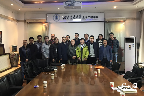 开展学术交流。会议由土木学院院长助理占玉林副教授主持,建筑材料教研室主任叶跃忠教授、隧道工程系主任晏启祥教授、道路与铁道工程系副主任杨荣山教授、土木学院王士民副教授、徐腾飞副教授、崔圣爱副教授、李福海高级工程师以及学院科研秘书许浒老师参加了此次会议。