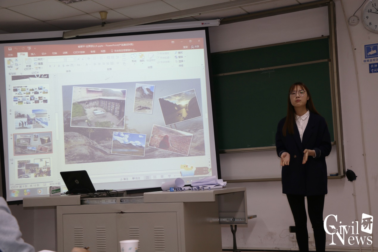 随着时间的推进,比赛已进入白热化阶段。下午两点,决赛在逸夫馆4318如期举行。进入决赛的选手们摩拳擦掌,蓄势待发。随着王老师的一声令下,决赛正式开始。其中一等奖获得者硕士研究生李朋通过其演讲主题“我遥远的家乡哈尔滨”,展示了哈尔滨源远流长的历史、独树一帜的文化、异国风情的建筑以及多种多样的美食,带我们领略了不一样的北国风光;另一位一等奖获得者杨翠平演讲主题是“世界那么大,我们该去看看”,分享了她在旅行中的奇闻趣事,并鼓励大家学习之余应该多去旅行,去感受外面的世界或许会有不一样的体验。