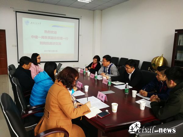 随后,中建一局与土木学院双方就校企合作共建班级事宜进行了研讨和交流。张昊副总经理介绍了招募虚拟中建一局班的想法和具体需求,希望选拔大三年级学生进行联合培养,让学生提前适应企业和工作环境,了解入职的准备和能力需求等。李锦红副书记介绍了关于开办“成长企航”校企合作共建班级的工作方案,并表达了希望企业能够更多参与学校人才培养过程,结合学校人才培养和企业就业的两个导向,尝试通过班级纵向建制的方式联合开展校企合作共建班级。