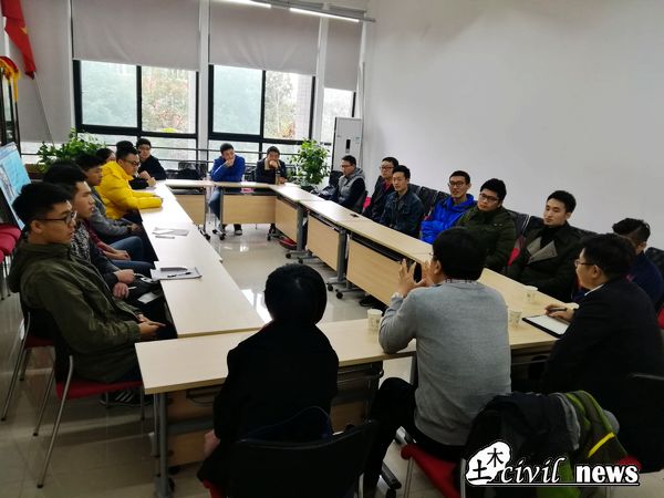 首先,张昊副总经理与学生开展了座谈会,主要分享了学生毕业后以后的发展方向,从“做技术”和“做管理”两个方面向同学们进行了分析,并介绍了中建一局的相关人才培养计划,鼓励学生创新和出国。
